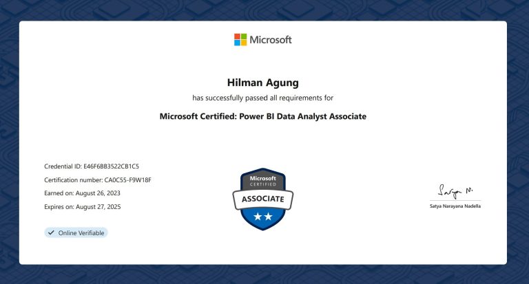 Setiap peserta akan mendapatkan sertifikat pelatihan yang ditanda tangani langsung oleh Certified Trainer Power BI